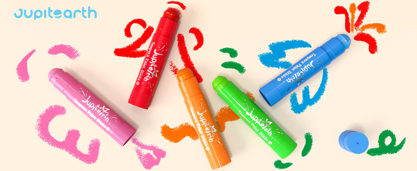 Jupitearth 28 PCS 60ml Finger and Washable Paint,Non-Toxic 12Vibrant Colors,Palette,Apron,Brush,Eye Stickers,Paints for Hand and Feet,Art Supplies
